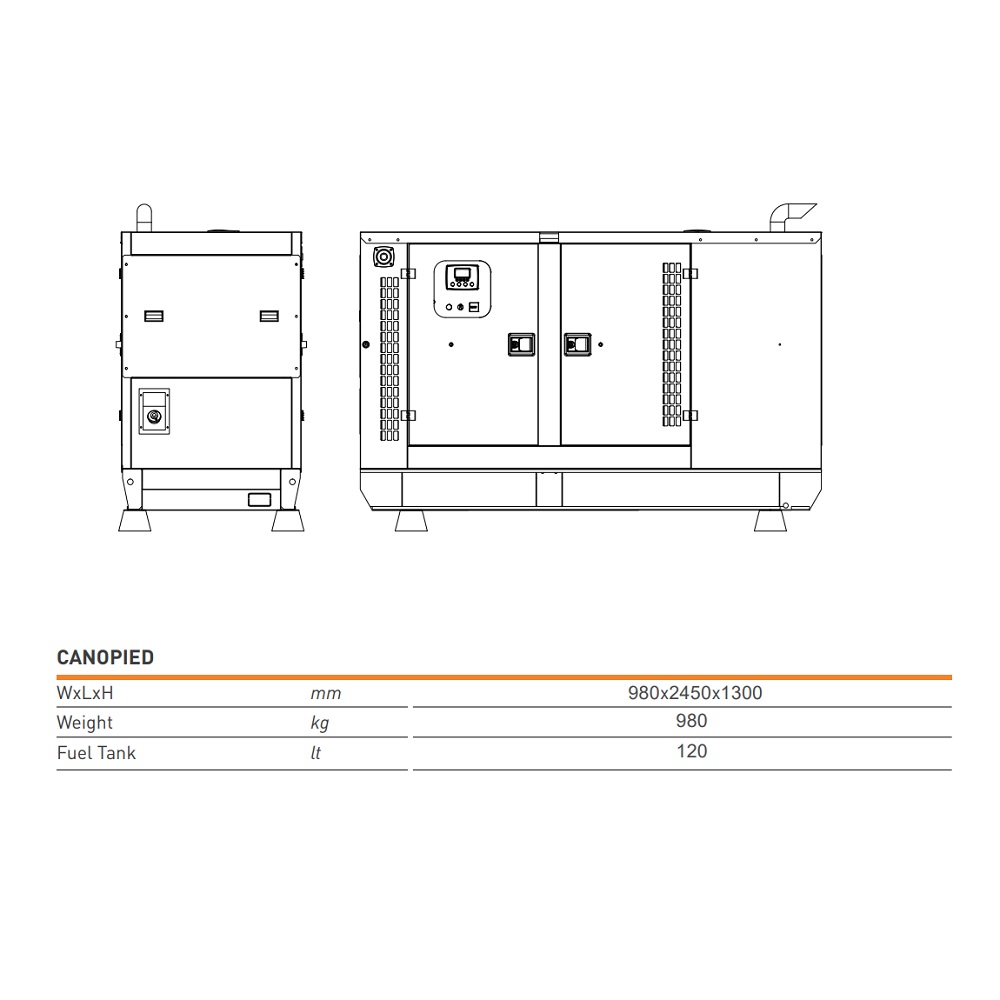 Ovi agregati su dizajnirani za pouzdano napajanje, obično u standby (pripravnosti) ili prime (osnovnom) režimu rada, a specifikacije se odnose na verziju od 55 kVA, što odgovara snazi od 44 kW sa moćnim 4-taktnim motorom.